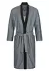 Dieser Mantel besticht durch das zeitlose Design und den unifarbenen Velours-Kragen im Kimono-Stil. Dieser wird mit einer feinen Biese nochmals aufgewertet. Der Bindegürtel und die zwei aufgesetzte Taschen, eine davon mit Reißverschlussinnentasche, machen diesen Bademantel komplett. Die Frotteeschlingen auf der Innenseite nehmen Feuchtigkeit schnell auf.